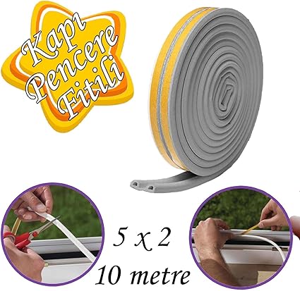 10 METRE (5×2=10 Metre) Yapışkanlı Gri Kapı Pencere Bandı Fitili Soğuk İzolasyon Kauçuk Bantları