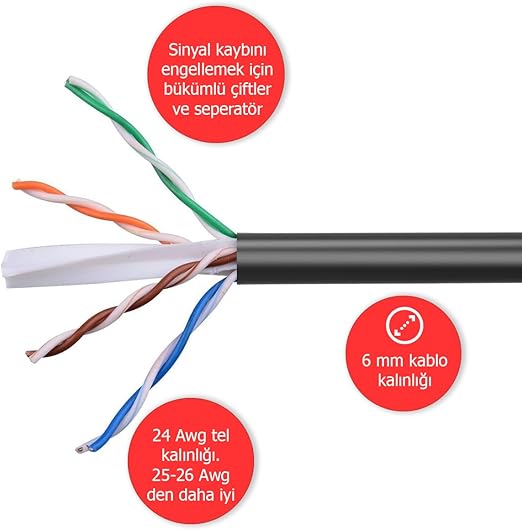 Aksesuarlar, Bilgisayar, Cat 6 Kabloları, Ethernet Kabloları, Kablolar, Kablolar ve Aksesuarlar