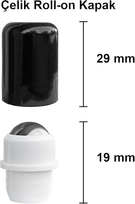 10 ml Çelik Roll On Şişesi 10 cc Sızdırmaz Siyah Kapaklı Cam Şişe 6 Adet (Amber, 10)