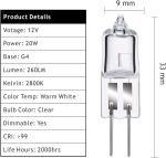 10 Parça G4 Halojen Ampuller 20 W 12 V Sıcak Beyaz 2800 K Kısılabilir Temizle Kapsül
