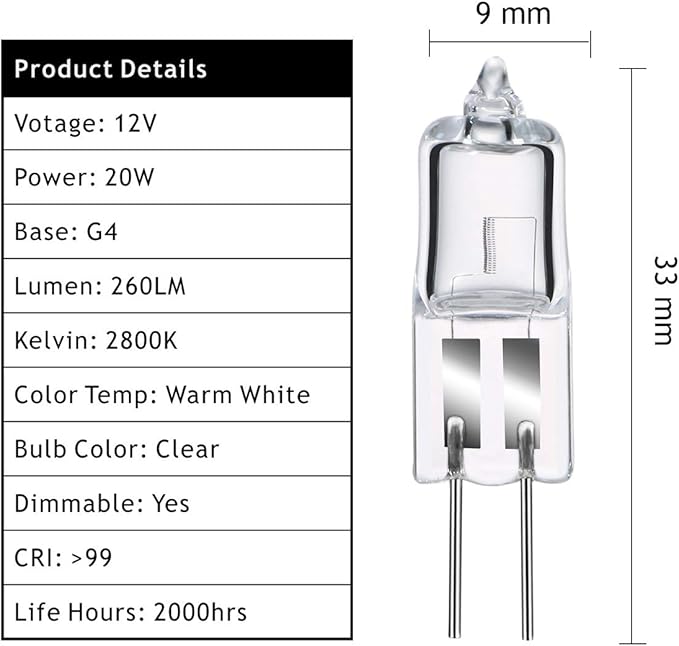 Ana Sayfa Ev ve Yaşam Aydınlatma Ampuller Halojen Ampuller 10 Parça G4 Halojen Ampuller 20 W 12 V Sıcak Beyaz 2800 K Kısılabilir Temizle Kapsül