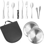 10 parçalı kamp çatal bıçak takımı, taşınabilir kamp çatal bıçak seti, 2 kişilik, piknik seti, paslanmaz çelik, dış mekan yemek takımı, kaşıklı, çatal, bıçak, tabak klipsi, kamp, piknik, seyahat,