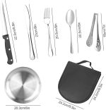 【Kamp çatal bıçak seti】Kamp bıçak seti 2 x çatal, 2 x kaşık, 2 x yemek bıçağı, 1 x tereyağı bıçağı, 2 x 8 inç paslanmaz çelik tabak, 1 x biftek klipsi, 1 x taşınabilir saklama çantasından oluşur. Çiftler veya arkadaşlar için kamp veya piknikte mükemmel.