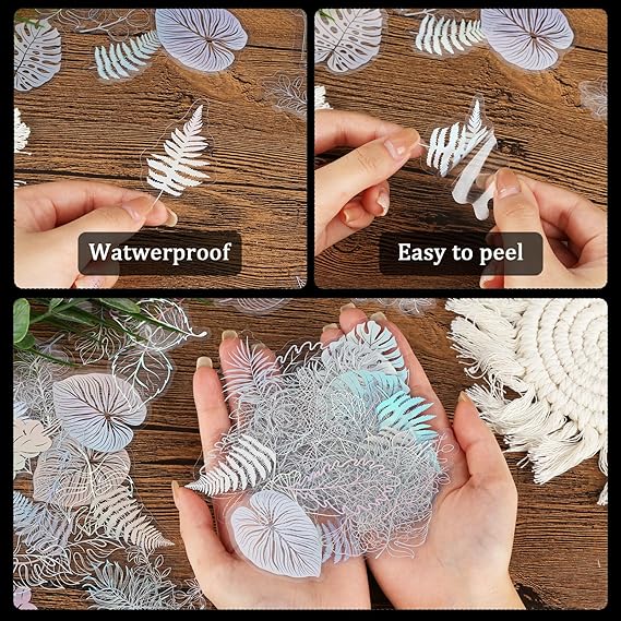 100 adet koleksiyon defteri çıkartması, PET lazer yapraklar, çıkartma, fotoğraf albümü, düğün, misafir defteri, yapraklar, çıkartma, dekorasyon, mermi, günlük, holografik bitki çıkartması, albüm el