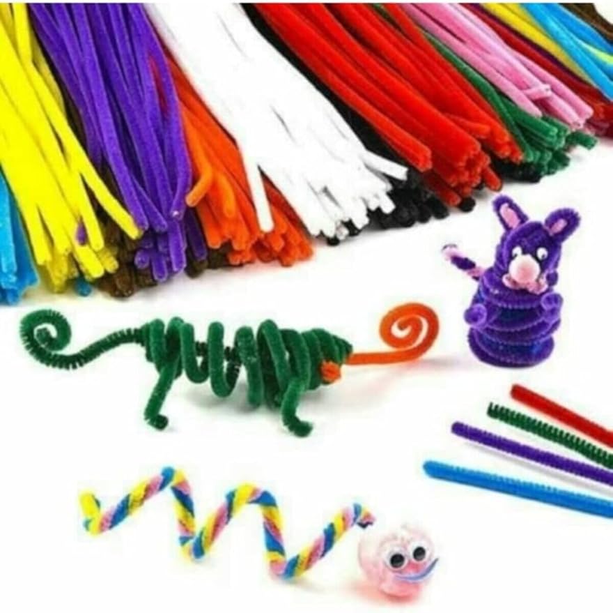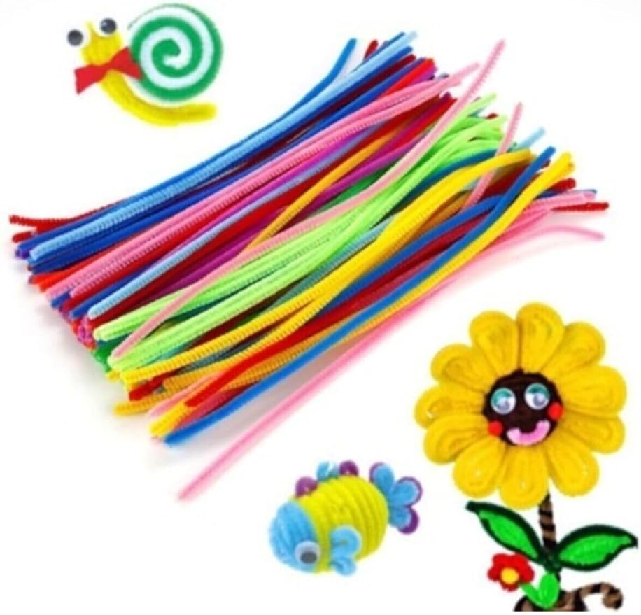 100 Adet, Renkli Şönil, Tüylü Tel, 30 Cm, Eğitici Şönil Seti, Peluş Tel