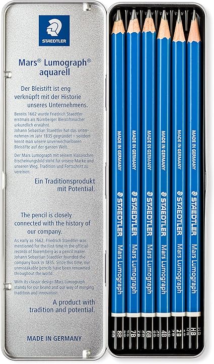 100 G6 Mars Lumograph Kursun Kalem 6’lı Metal Kutuda 8B, 7B, 6B, 4B, 2B, Hb