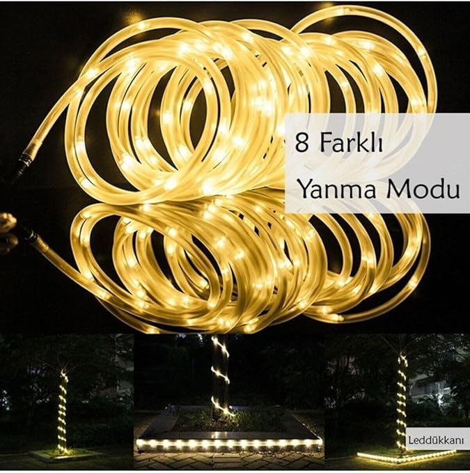 100 Led 10 Metre Sarı Flex Peri Led Işık Güneş Enerjili Solar Bahçe Balkon Ağaç Aydınlatması Solar Tek Ebat