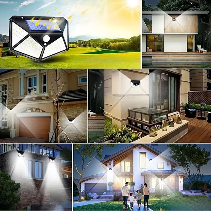 100 Ledli 3 Farklı Aydınlatma Ayarlı Solar Güneş Enerjili Hareket Sensörlü Bahçe Duvar Lambası