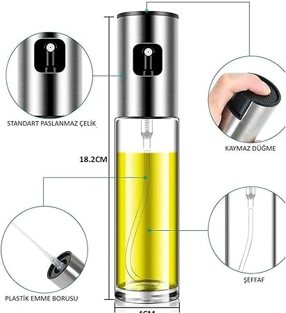 Paslanmaz çelik sprey zeytinyağı, sirke püskürtücü yağdanlık zeytinyağı, sirke veya sos için kullanılabilir