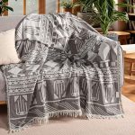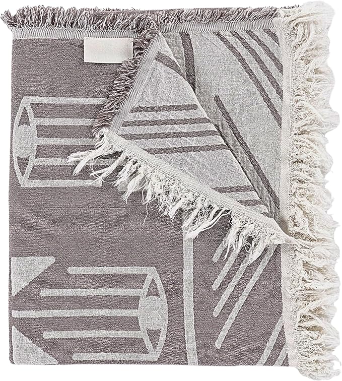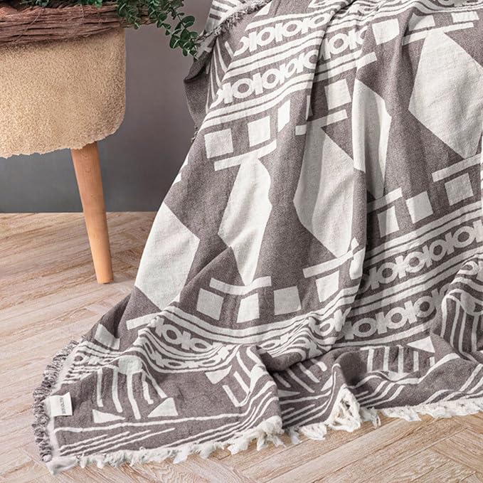 100% Pamuk Koltuk Şalı TV Battaniyesi, Geniş 130×170 cm Yüksek Kaliteli Pamuklu Kumaş Dekoratif Koltuk Atma Şal Battaniyeleri (Bohem Gri)