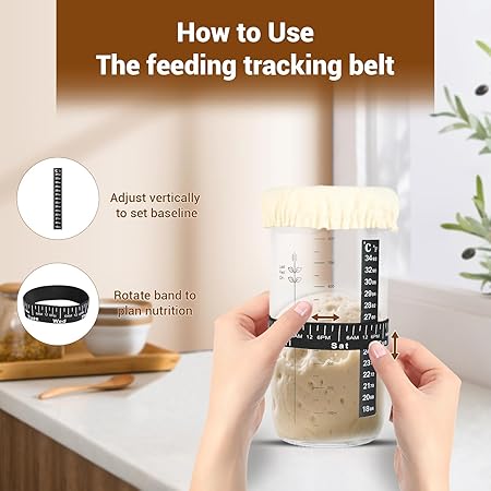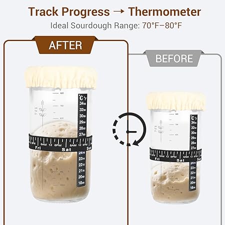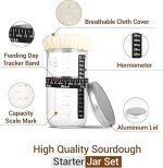 1000 ml, ekşi maya başlangıç seti, 1000 ml, termometreli mayalama camı, silikon spatula, alüminyum kapak ve tekrar kullanılabilir besleme bandı (ekmek pişirme aksesuarı)