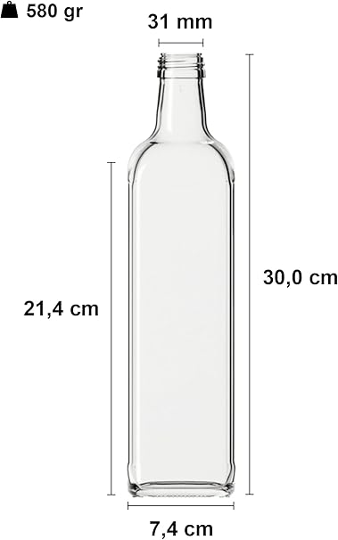 1000 ml Şeffaf Maraska Yağdanlık Kapaklı Ve Kapüşonlu 1000 Cc Köşeli Cam Şişe 2 Adet