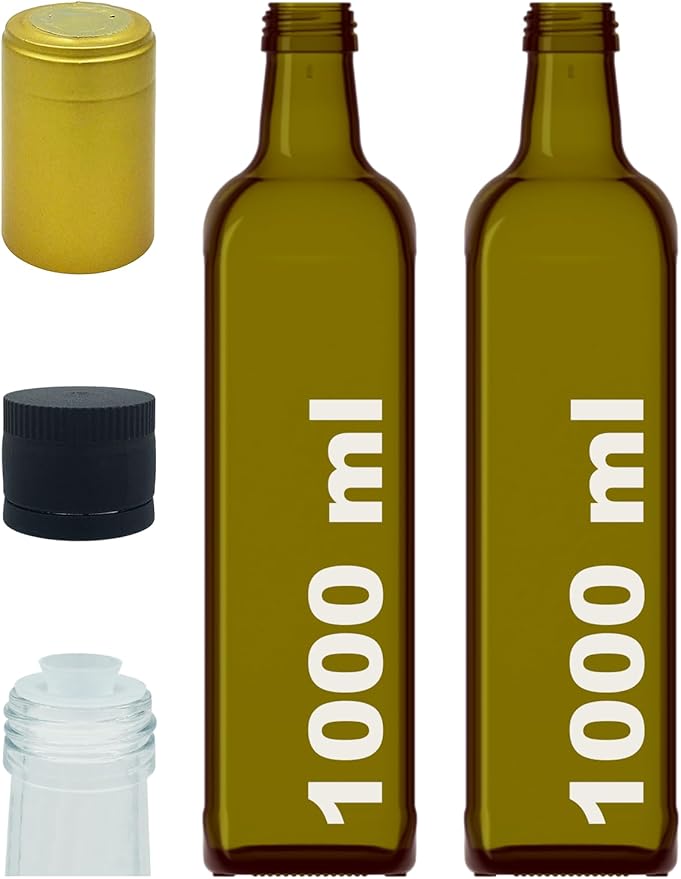1000 ml Yeşil Maraska Yağdanlık Kapaklı Ve Kapüşonlu 1000 Cc Köşeli Cam Şişe 2 Adet