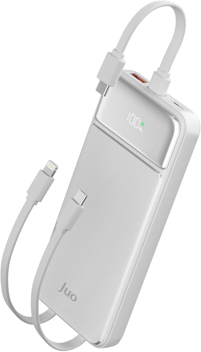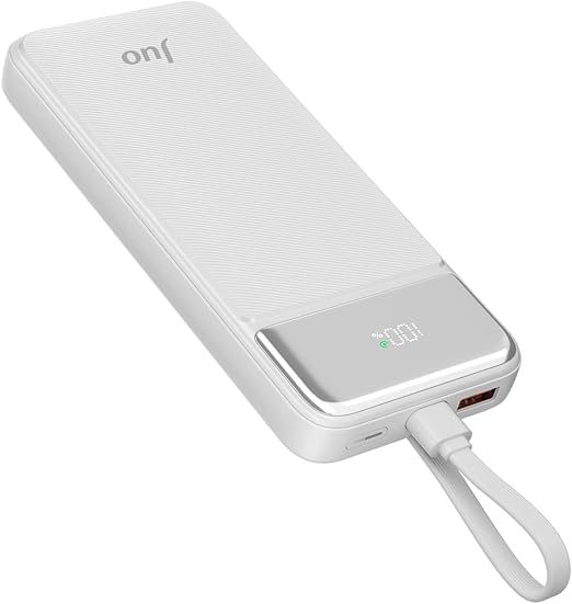 Juo JCP410 22.5W 10000mAh dijital led göstergeli lightning ve type-c dahili kablolu taşınabilir şarj aleti (powerbank) ile ekstra güç kablosuna gerek duymadan akıllı telefon, tablet (Samsung, iPhone, Xiaomi, Huawei v.b) gibi cihazlarınızı rahatlıkla şarj edebilirsiniz. Cihaz üzerinde yerleşik olarak lightning ve type-c olmak üzere iki tip kablo bulunmaktadır. Lightning kablo ile iPhone 5-14 serisi ve bazı ipad modellerini 5V 2.4A kadar şarj edebilirsiniz. Dahili olarak gelen diğer kablo ise Type-c olup (Samsung, Xiaomi, Reeder, Huawei, Realme, Oppo, Poco, Redmi v.b) android tablet telefon gibi type-c porta sahip cihazlarınızı 22.5W güç desteği ile hızlı şarj edebilirsiniz.