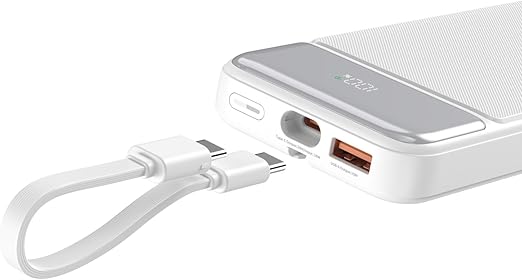 10000mAh 22.5W Led Ekranlı Lightning ve Type-C Kablolu Powerbank Taşınabilir Hızlı Şarj Cihazı Beyaz