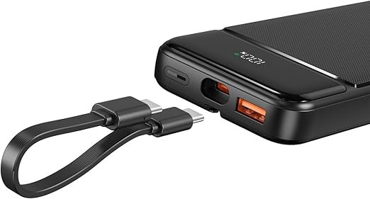 10000mAh 22.5W Led Ekranlı Lightning ve Type-C Kablolu Powerbank Taşınabilir Hızlı Şarj Cihazı Siyah