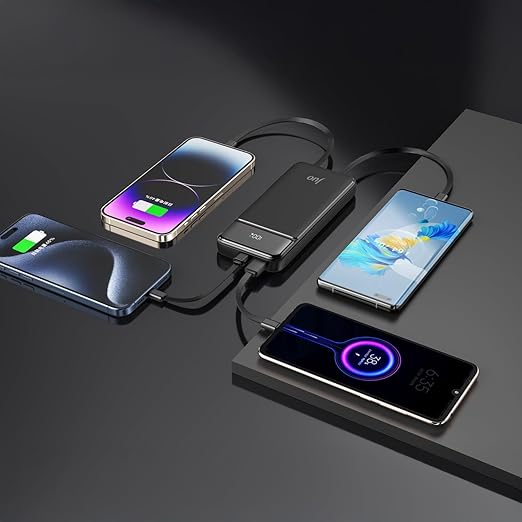 Juo JCP410 22.5W 10000mAh dijital led göstergeli lightning ve type-c dahili kablolu taşınabilir şarj aleti (powerbank) ile ekstra güç kablosuna gerek duymadan akıllı telefon, tablet (Samsung, iPhone, Xiaomi, Huawei v.b) gibi cihazlarınızı rahatlıkla şarj edebilirsiniz. Cihaz üzerinde yerleşik olarak lightning ve type-c olmak üzere iki tip kablo bulunmaktadır. Lightning kablo ile iPhone 5-14 serisi ve bazı ipad modellerini 5V 2.4A kadar şarj edebilirsiniz. Dahili olarak gelen diğer kablo ise Type-c olup (Samsung, Xiaomi, Reeder, Huawei, Realme, Oppo, Poco, Redmi v.b) android tablet telefon gibi type-c porta sahip cihazlarınızı 22.5W güç desteği ile hızlı şarj edebilirsiniz.