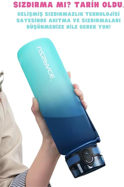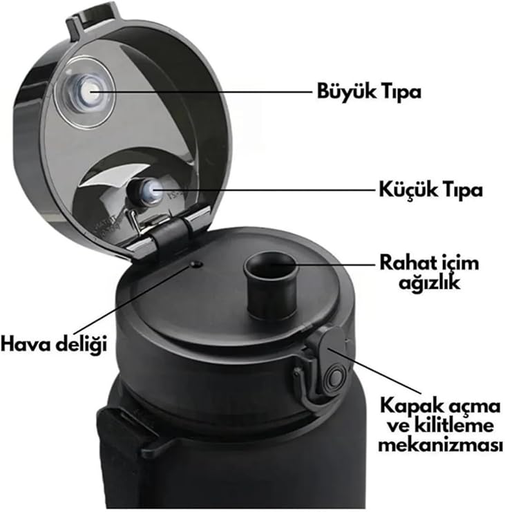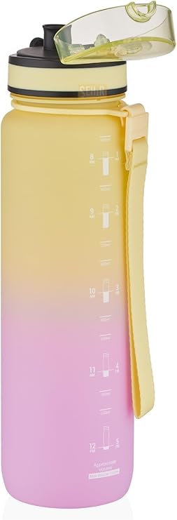 1000ml Çift Renkli Sızdırmaz BPA İçermez Kilitlenebilir Kapaklı Motivasyonel Tritan Su Matarası (Sarı-Lila)
