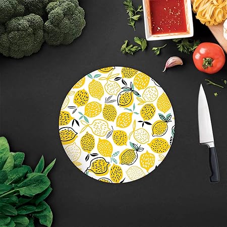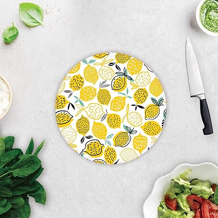 10011505223 Sarı Limonlar Cam Kesme Tahtası, Çap 32cm