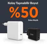 Ultra Kompakt Tasarım Juo 100W USB-C Güç Adaptörü küçük boyutu ve sadece 218 gram ağırlığı ile çantanızda rahatlıkla taşıyabilirsiniz. Küçük boyutları dar alanlarda bile rahatlıkla kullanmanıza kolaylık sağlamaktadır. Günlük yaşamınızda, işte, seyahatte veya spor aktivitelerinde rahatlıkla yanınızda taşıyabilir, kullanım kolaylığının keyfini sürebilirsiniz.