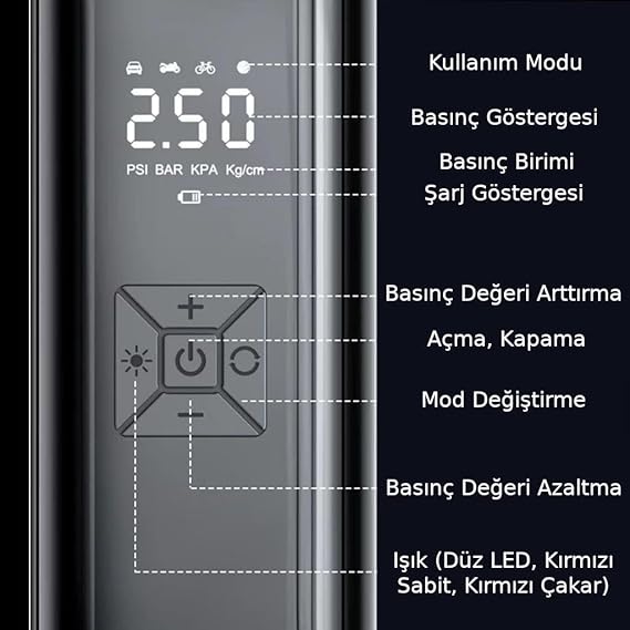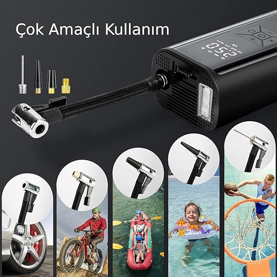 100W 6000mAh Şarjlı Araba Lastik Hava Pompası LED Işıklı Çok Amaçlı Bisiklet Yatak Top Pompası