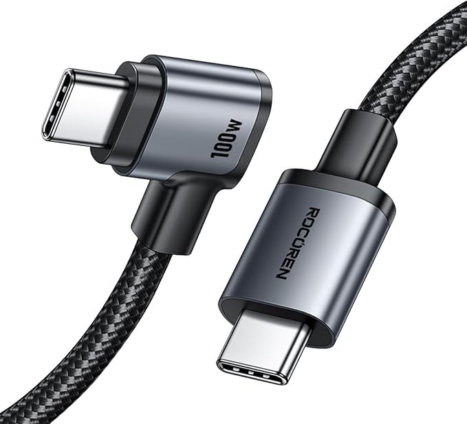 100W Type-C to Type-C 90° Örgülü PD Hızlı Şarj ve Data Kablosu 2 Metre