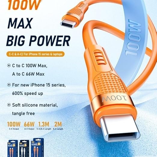 100W Type-C to Type-C Hızlı Şarj ve Data Kablosu 1.3m Turuncu AZ-B03a (100w Type-C to Type-C Turuncu)