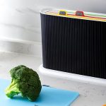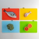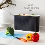 1067 Standlı Çoklu Kesme Tahtası Seti – Et Sebze Balık Doğrama Tahtası Seti Siyah – Beyaz