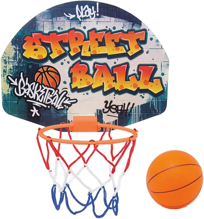 107406024 basketbol seti, kapı askılı, tahta 27 x 5 x 21 cm, fileli pota 15 cm, top 8,6 cm, 3 yaş ve üzeri