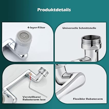 1080 derece musluk uzatıcı, 1440° döndürülebilir çok fonksiyonlu uzatma musluğu, evrensel perlatörlü, 2 püskürtme fonksiyonlu musluk uzatması, Gluckaro muslukları mutfak/banyo için1080 derece musluk uzatıcı, 1440° döndürülebilir çok fonksiyonlu uzatma musluğu, evrensel perlatörlü, 2 püskürtme fonksiyonlu musluk uzatması, Gluckaro muslukları mutfak/banyo için