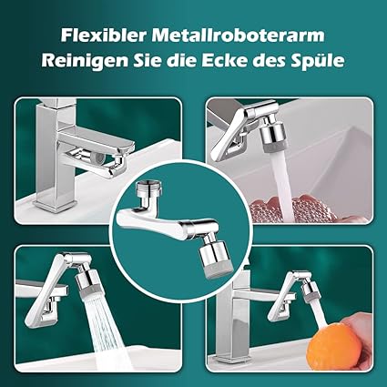 【Geliştirilmiş 1080° + 360° dönebilen musluk başlığı】Temizlemesi kolay rahat hareketli metal kol tasarımı, dört açıda serbestçe dönebilir ve köşelerdeki kirin temizlenmesini kolaylaştırır. Robot kolunun sağlamlığını ayarlamak için aletler kullanabilirsiniz