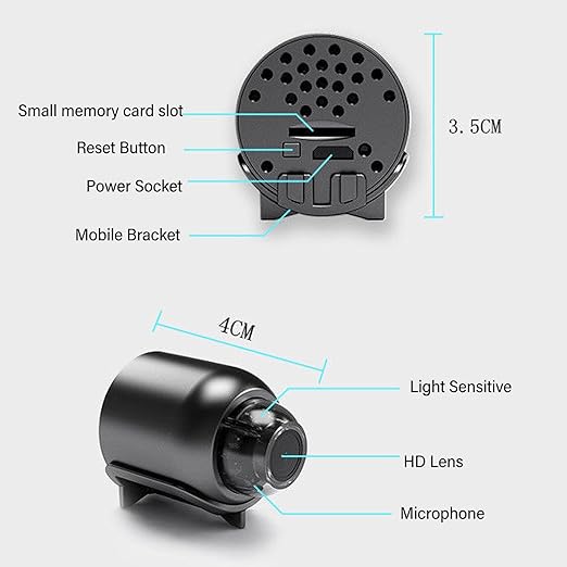 Çoklu ve Depolama Seçenekleri: Bu Küçük Kamera, mobil APP aracılığıyla SD, Ultra HD ve HD seçimini destekler. Ayrıca, geriye dönük kontroller için 15 güne kadar video depolama olanağı sağlayan 128 GB’a kadar (dahil değildir) depolama kartını destekler.