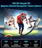 Gelişmiş Teknoloji—10K 8K@60Hz: Ultra Yüksek Hızlı HDMI Kablosu ile çığır açan çözünürlüğü deneyimleyin, muhteşem 10K 8K@60Hz ve 4K@120Hz görüntüleme yetenekleri sunar. Dinamik HDR ve 12-Bit renk işleme özelliklerinden yararlanan kablomuz, her karede eşsiz derinlik, parlaklık ve detay sağlar, nefes kesici bir görsel deneyim garanti eder.