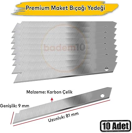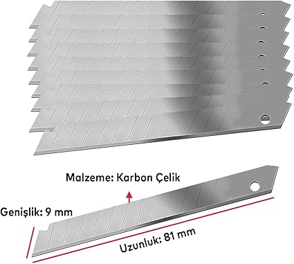 10’lu 10 Adet 9 mm x 81 mm Maket Bıçağı Yedeği Ucu Kırılabilir Yedek Uç Bıçak Ucu Jilet