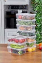 ÇOK AMAÇLI KULLANIM: Meyve, sebze, et ürünleri ve kuru gıdaları düzenli şekilde saklamak için uygundur. Bu kaplar sadece buzdolabı için değil, kiler düzenleme, mutfak dolapları, banyo malzemeleri, ofis çekmeceleri, çocuk odası oyuncakları gibi pek çok alanda kullanım için uygundur.