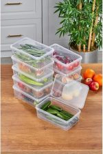 PAKET İÇERİĞİ: 10 adet şeffaf saklama kabı, her biri 2 litre kapasiteli, buzdolabı düzenleme için ideal boyutlarda tasarlanmıştır