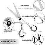 Ayarlanabilir makas vidası – Bu saç makası seti, gerekli gerilime göre makasın kolayca sıkılmasını veya gevşetilmesini sağlayan gümüş bir gerilim ve ayar vidasına sahiptir.