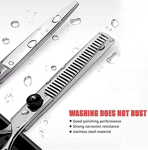 Ayarlanabilir makas vidası – Bu saç makası seti, gerekli gerilime göre makasın kolayca sıkılmasını veya gevşetilmesini sağlayan gümüş bir gerilim ve ayar vidasına sahiptir.
