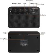 【Güçlü ve Taşınabilir】: Bu 10W elektrik gitar amfisi kompakt ve hafiftir, bu da onu inanılmaz derecede taşınabilir hale getirir. Küçük boyutuna rağmen güçlü bir sese sahiptir, bu da onu pratik yapmak, sokak performansları veya küçük konserler için mükemmel hale getirir.