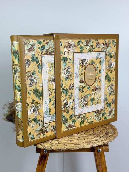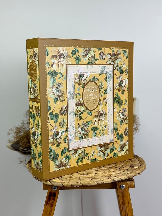 10x15cm 500 Fotoğraf Kapasiteli Kutulu Çiçek Desenli Lüks Ofset Fotoğraf Albümü (SARI)