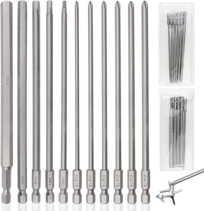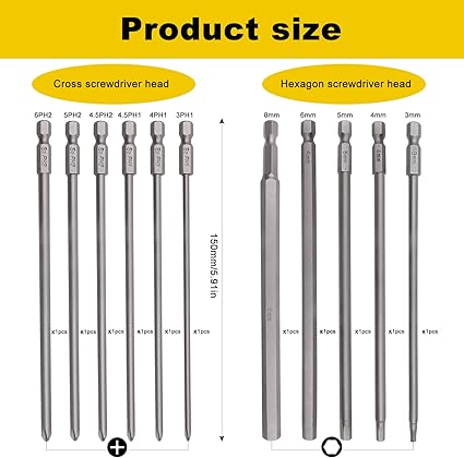 ✅【Ambalaj listesi】 11 uzun uç seti alıyorsunuz, pakette 2 tornavida ucu veya 6 yıldız tornavida ucu ve 5 altıgen tornavida ucu vardır. Phillips tornavida uçlarının spesifikasyonu veya 3PH1, 4PH1, 4.5PH1, 4.5PH2, 5PH2 ve 6PH2; Altıgen uç spesifikasyonları boyut veya 3 mm, 4 mm, 5 mm, 6 mm ve 8 mm.