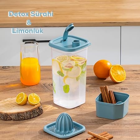 1110 Sızdırmaz Kapaklı Detoks Sürahi – Matara & Limonluk, Şerbetlik, Suluk Şeffaf Mavi 2 L