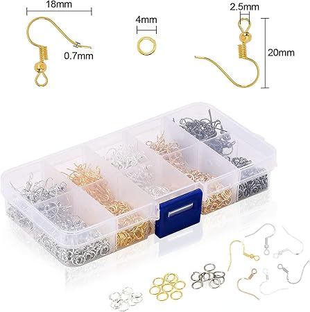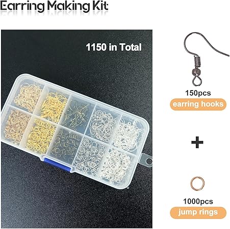 Paket içeriği: 150 adet küpe kancası, 1000 adet atlama halkası, şeffaf bir saklama kutusunda gelirler, küpe yapımı ve küpe onarımı için iyidir