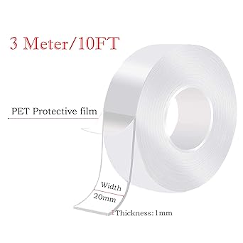 3 Metre Çift Taraflı Bant Ekstra Güçlü Şeffaf Yıkanabilir İnce Nano Bant Çıkarılabilir İz Yok Kaymaz Yeniden Kullanılabilir Çift Bant, Halı, Mutfak, Araba veya Ofis için