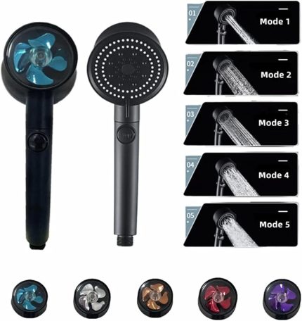Turbo Fan 5 Fonksiyonlu Duş Başlığı El Duşu Handshower, Siyah