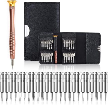 Home 25 Parça Hassas Tornavida Seti, Deri Çantalı, Krom-Vanadyum Çelik, PC/Laptop/Telefon/Gözlük Tamir Seti, Torx/Düz/Yıldız Uçlu