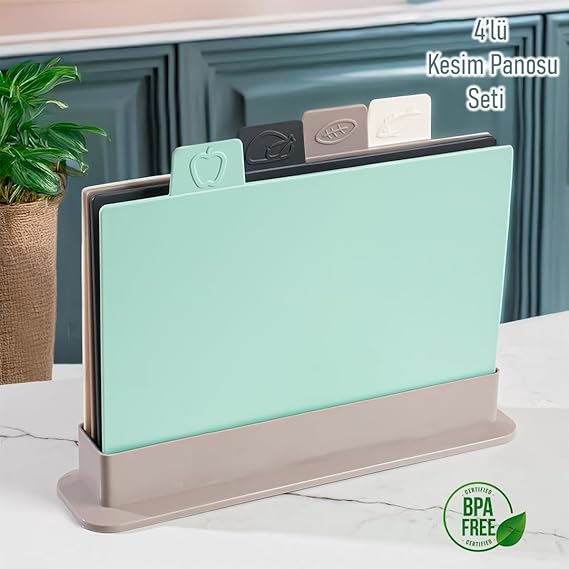 1164 Cappuccino Asıa 4’lü Kesme Tahtası Sebze, Et ve Ekmek Kesme Tahta Seti