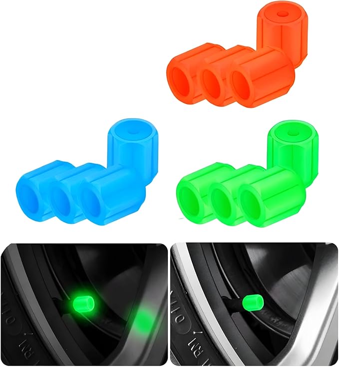 12 Adet Floresan Karanlıkta Parlayan Oto Araba Sibop Kapağı Tüm Araçlara Uyumlu Fosforlu 3 Farklı Renk Mavi Kırmızı Yeşil Toz Geçirmez Motorsiklet SUV Kamyon Supap Kapağı Oto Aksesuarları