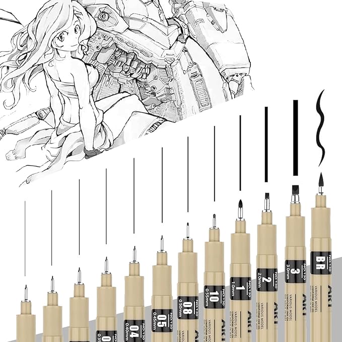 【Kullanımı kolay】Karışıklığı önlemek için her mürekkep kalem kapağı uç boyutuyla işaretlenmiştir. İhtiyacınız olan boyutu hızlı bir şekilde bulabilir ve daha iyi boyamanıza yardımcı olabilirler. Bunların arasında 01, 02, 03 ve 04 ana hatları ve kontur için kullanılabilir; 05, 08 ve 10 kalın kenarları ana hatlarıyla çizmek ve çizmek için kullanılabilir; 1, 2, 3 ve BR geniş alan arka planlarını boyamak için kullanılabilir.