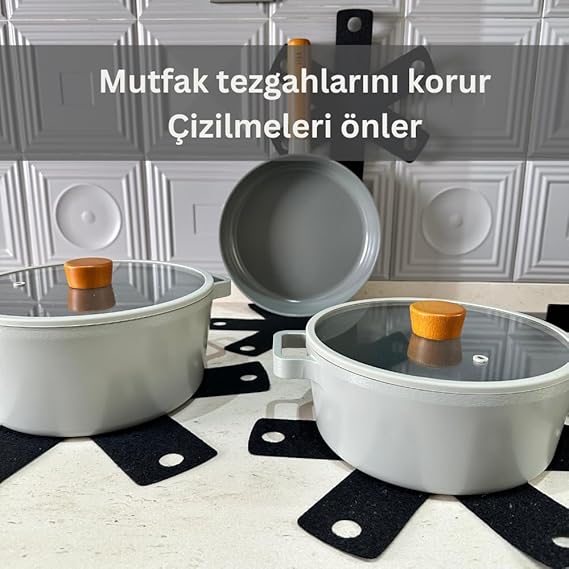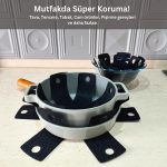 12 Adet Tencere Tava Koruyucu Düzenleyici Çizilme Önleyici Set (Siyah)